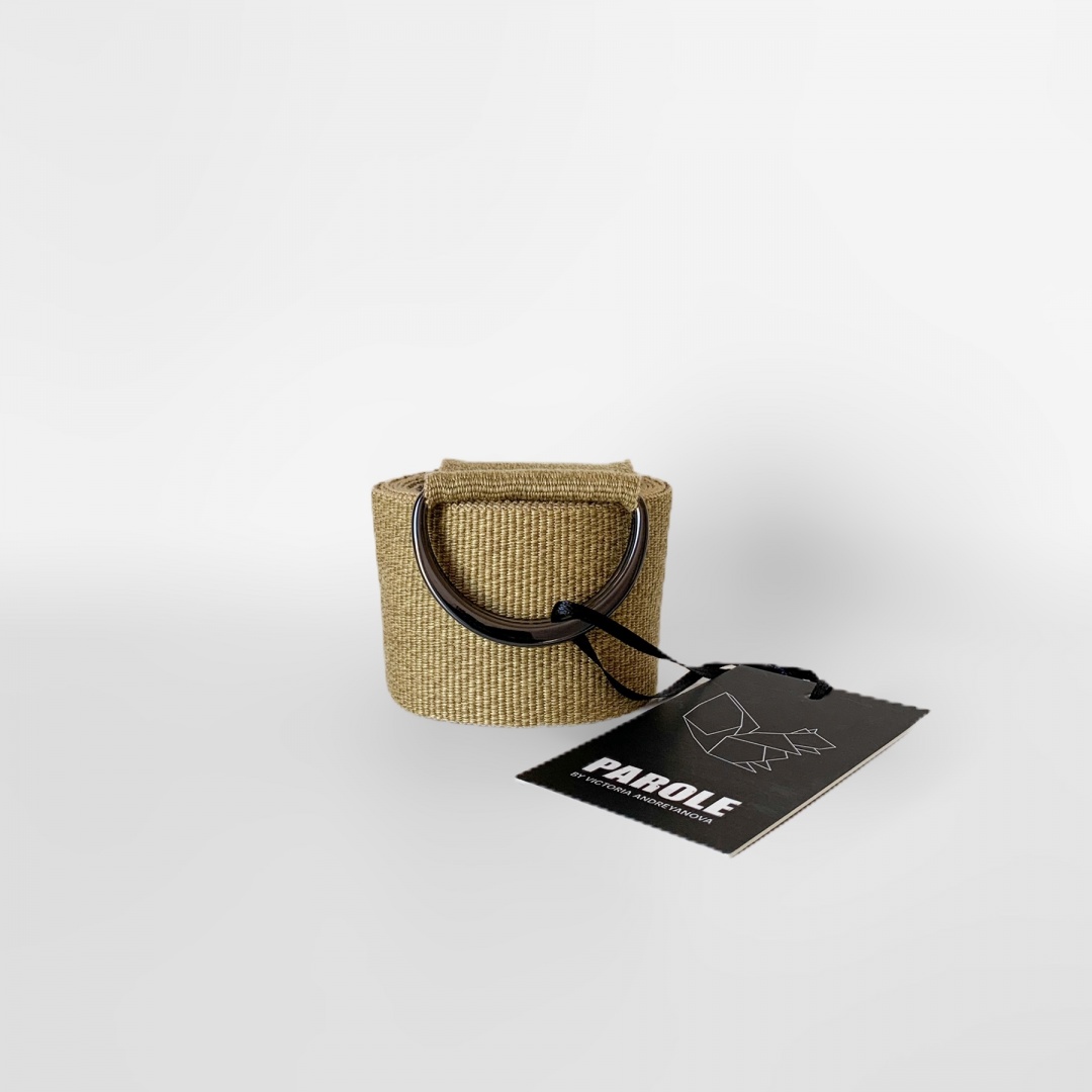 Ремень из репсовой меланжевой ленты, изготовленной на семейной итальянской мануфактуре, на металлических полукольцах.