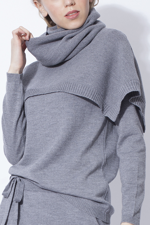 Снуд из шерсти мериноса - модный и практичный зимний аксессуар. Помимо защиты головы от холода и непогоды, утепляет верх груди и спины. Отлично работает в луке с платьями из этой же пряжи, а также может использоваться как самостоятельный аксессуар.